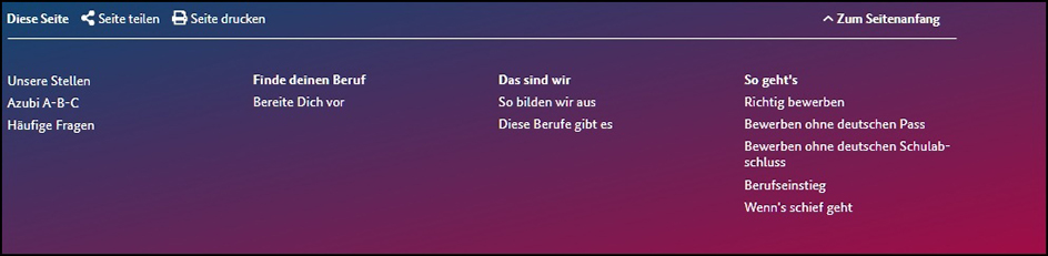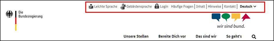 Auf dieser Internet-Seite gibt es 4 Haupt-Bereiche.